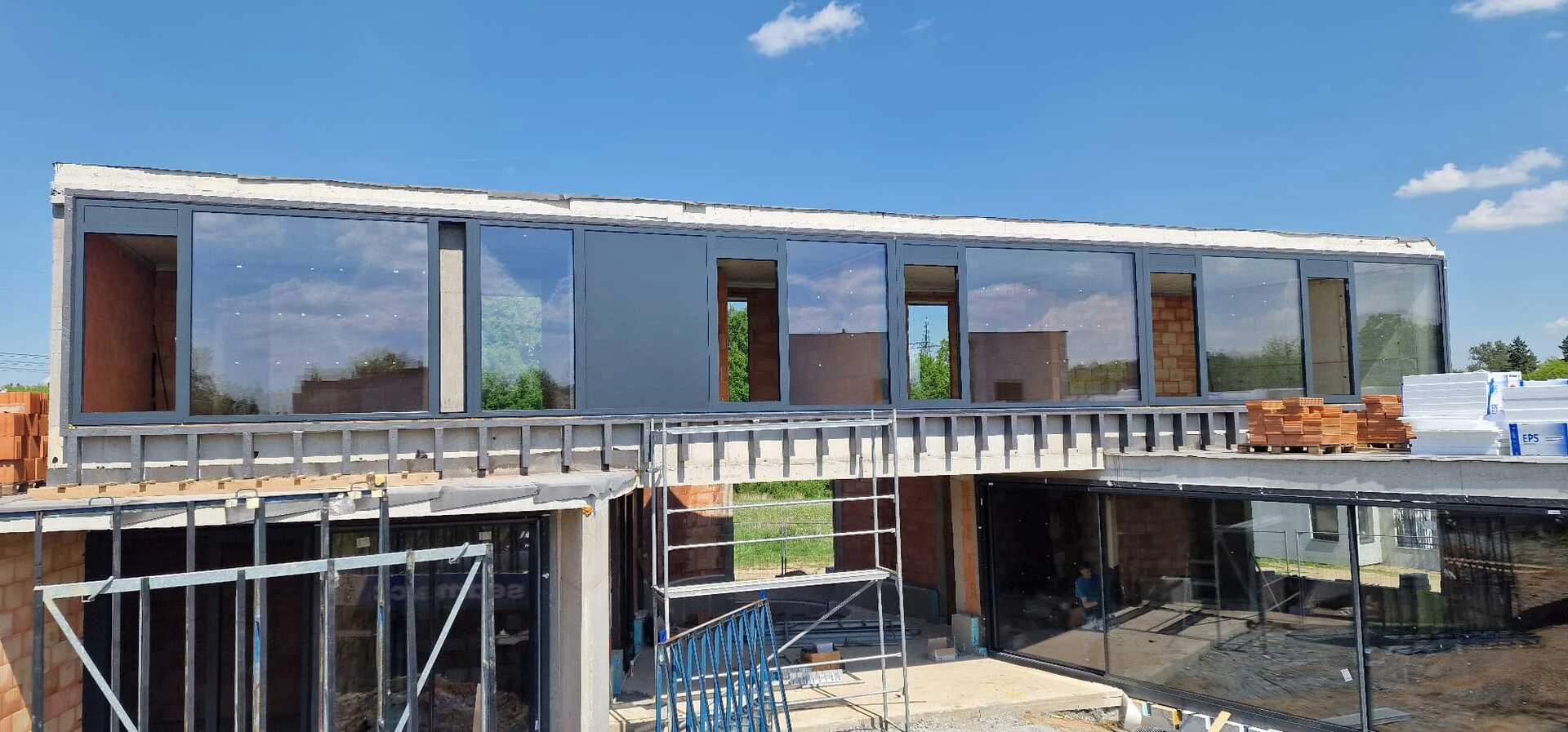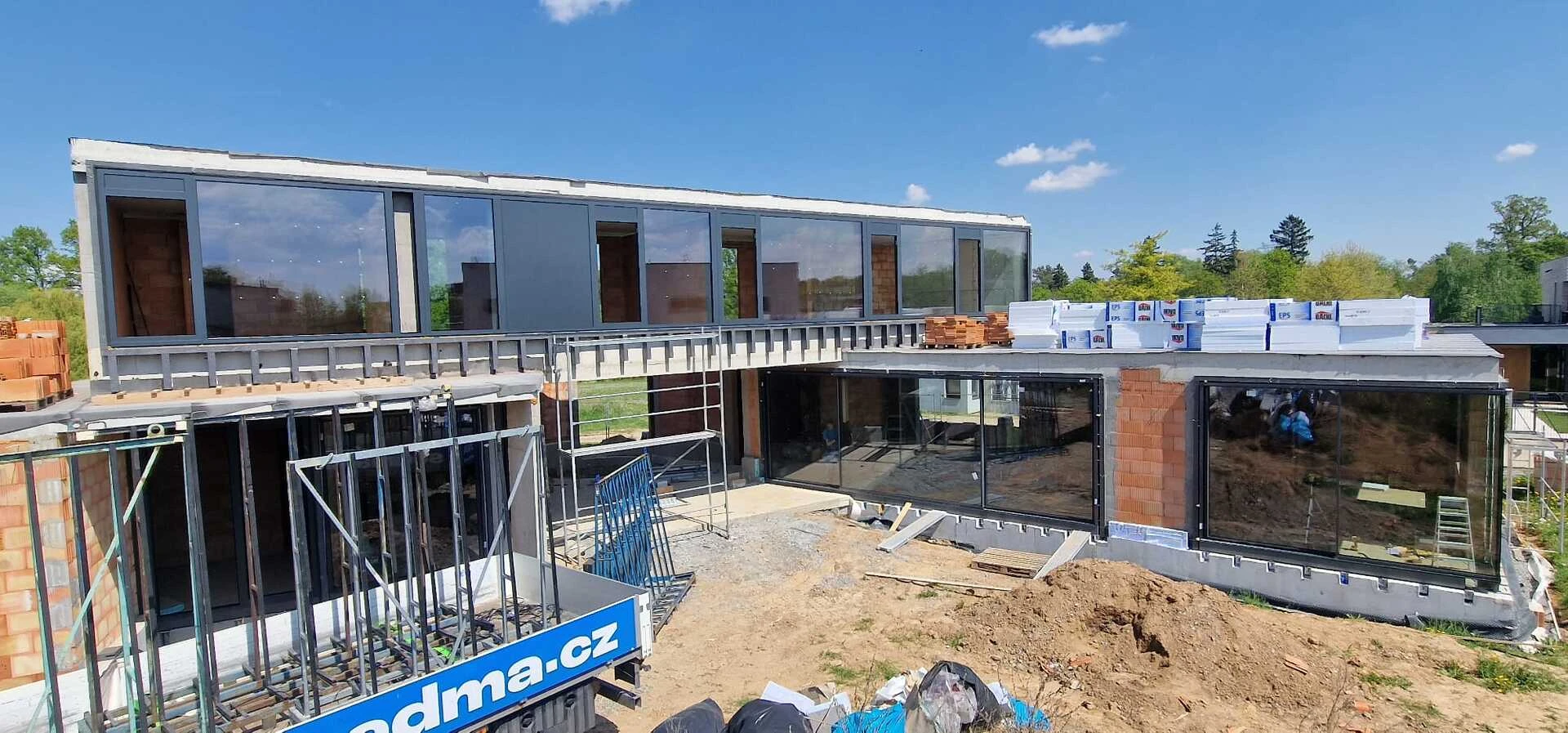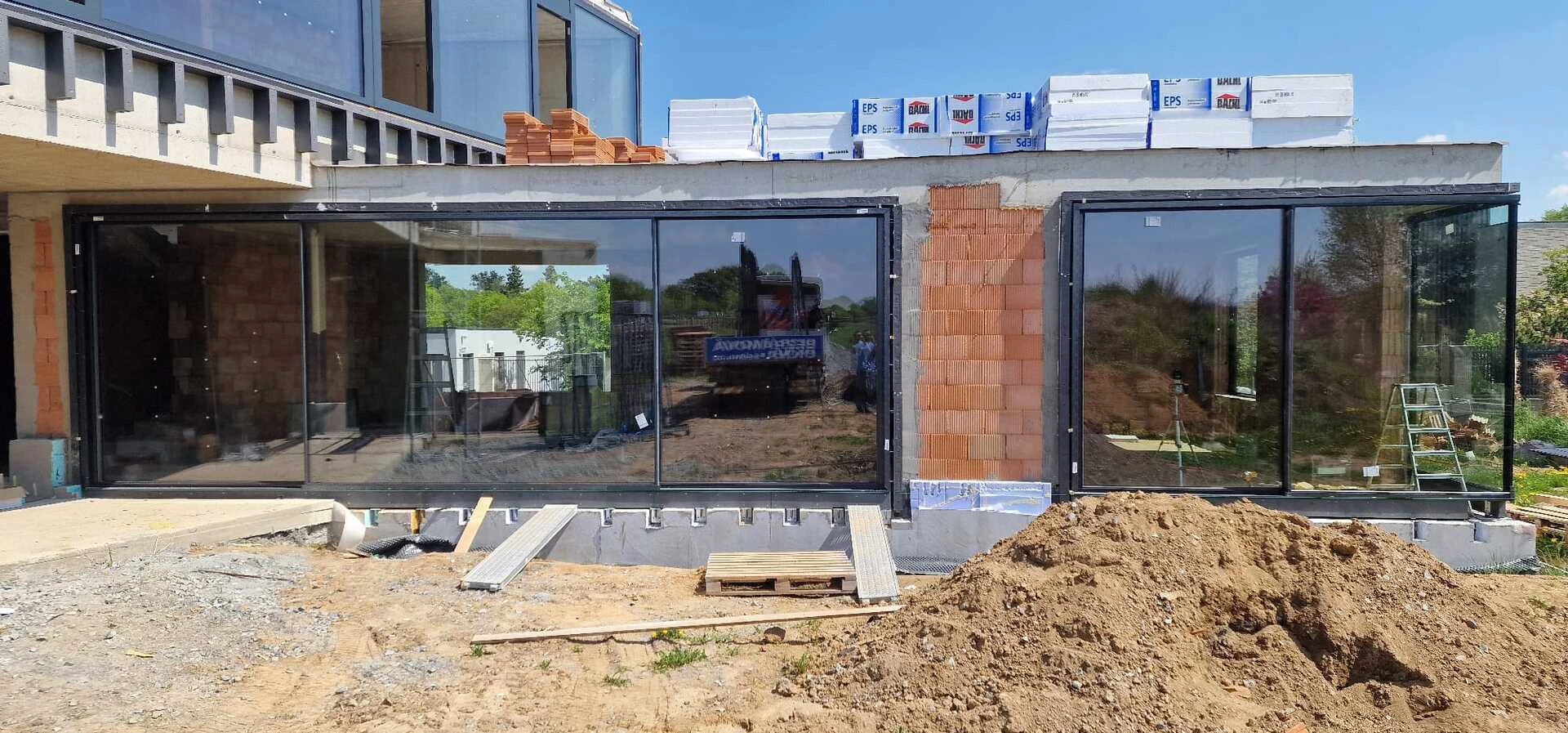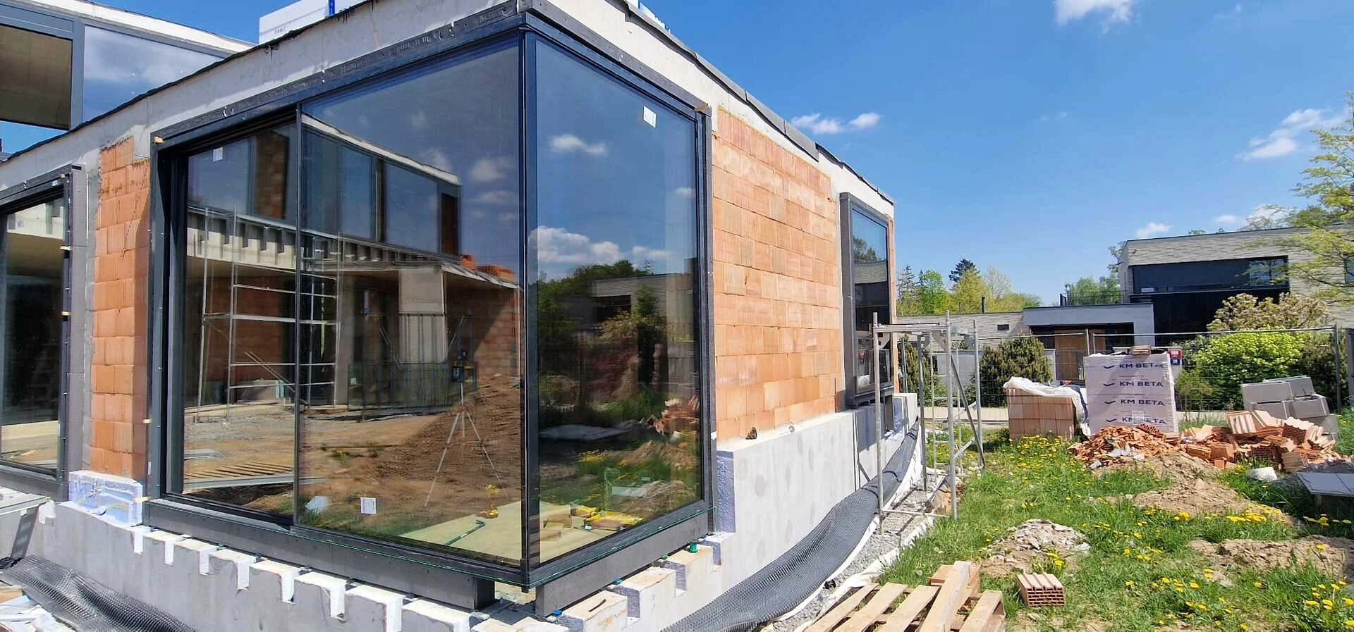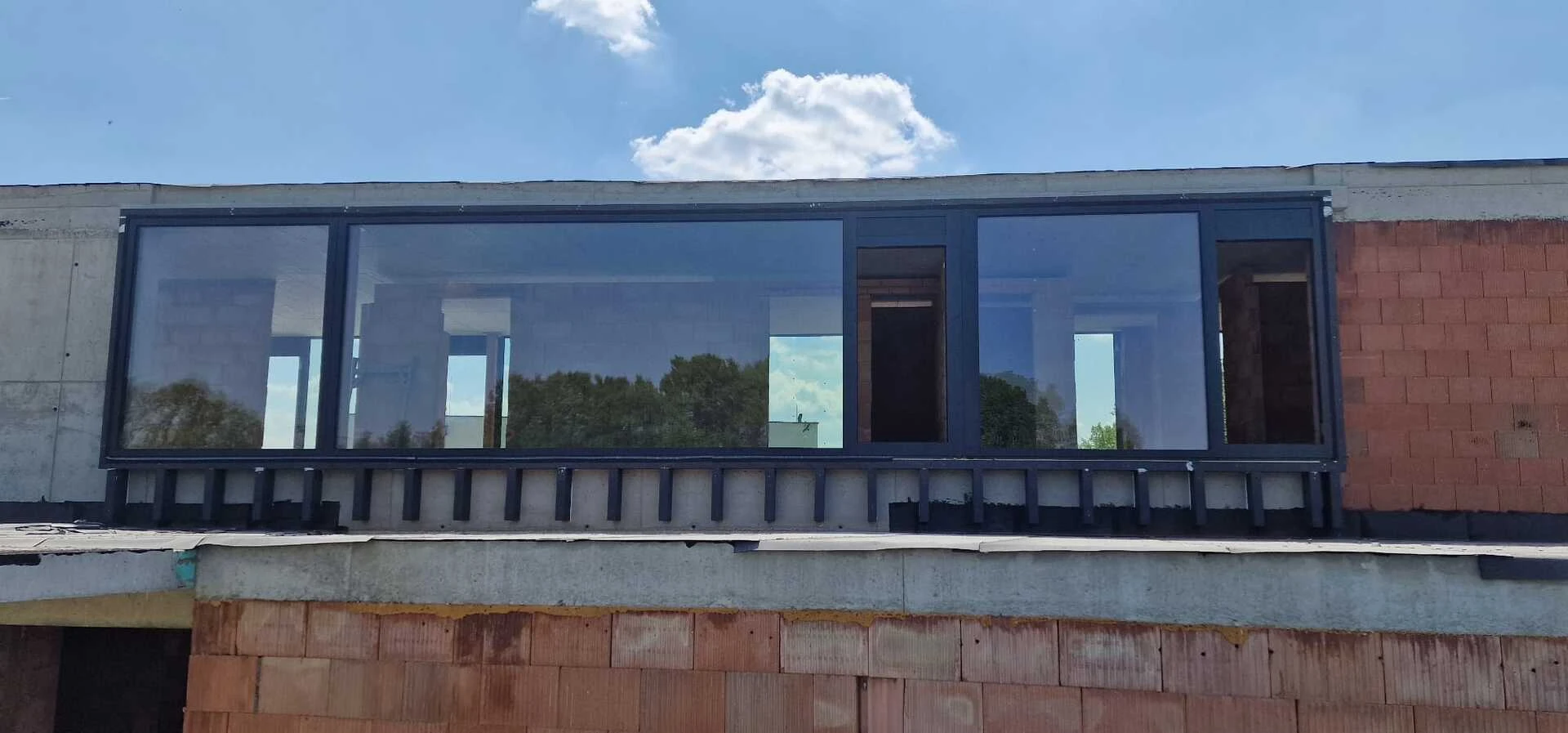 Právě realizujeme v Průhonicích u Prahy, bezrámová velkoformátová okna dveře, které jsou osazené před hrubou monolitickou stavbou za pomoci speciální konstrukce předsazené montáže SEDMA . Předsazení velkoformátových oken a dveří mimo nosnou konstrukci staveb je dnes vcelku běžné řešení, které má jako hlavní výhodu přínos více světla do vnitřního prostoru přes bezrámová velkoformátová okna a dveře a hlavně tepelněizolační vlastnosti již tak perfektně izolujících bezrámových velkoformátových oken a dveří.