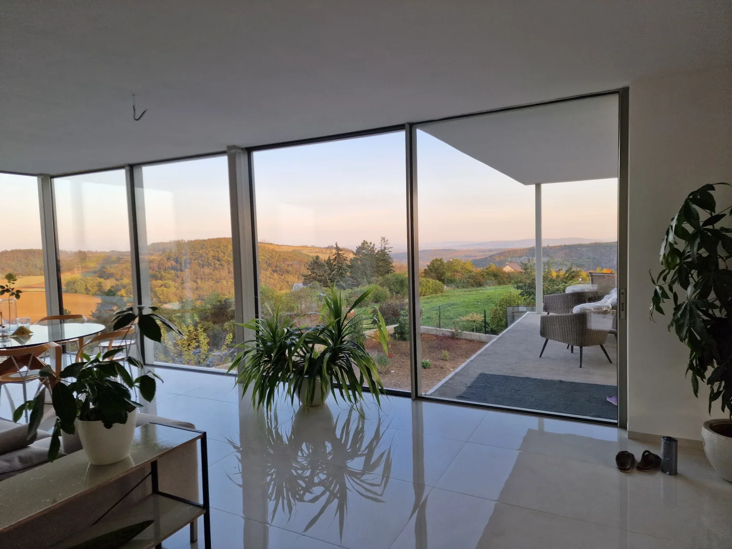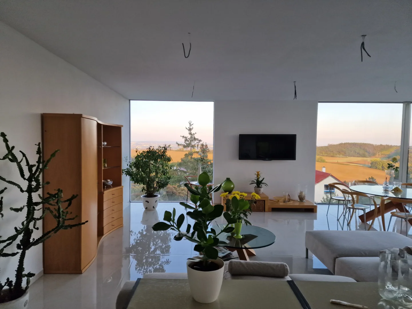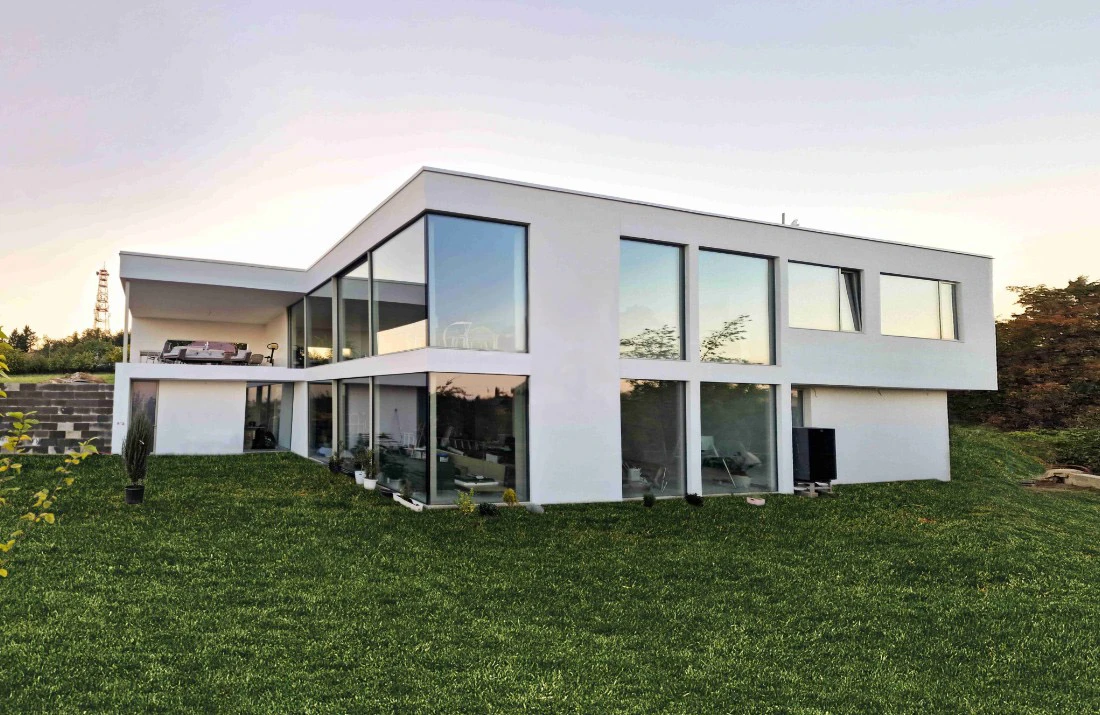 Investor stavěl svépomocí a chtěl využít nové technologie moderního bydlení, které mu zajistili velké prosklené plochy bezrámových oken a dveří.